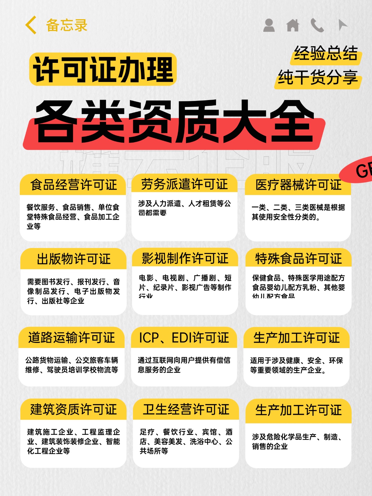 1、增值电信业务经营许可证(ICP、EDI、SP、IDC、CDN、ISP、VPN、呼叫中心业务等);